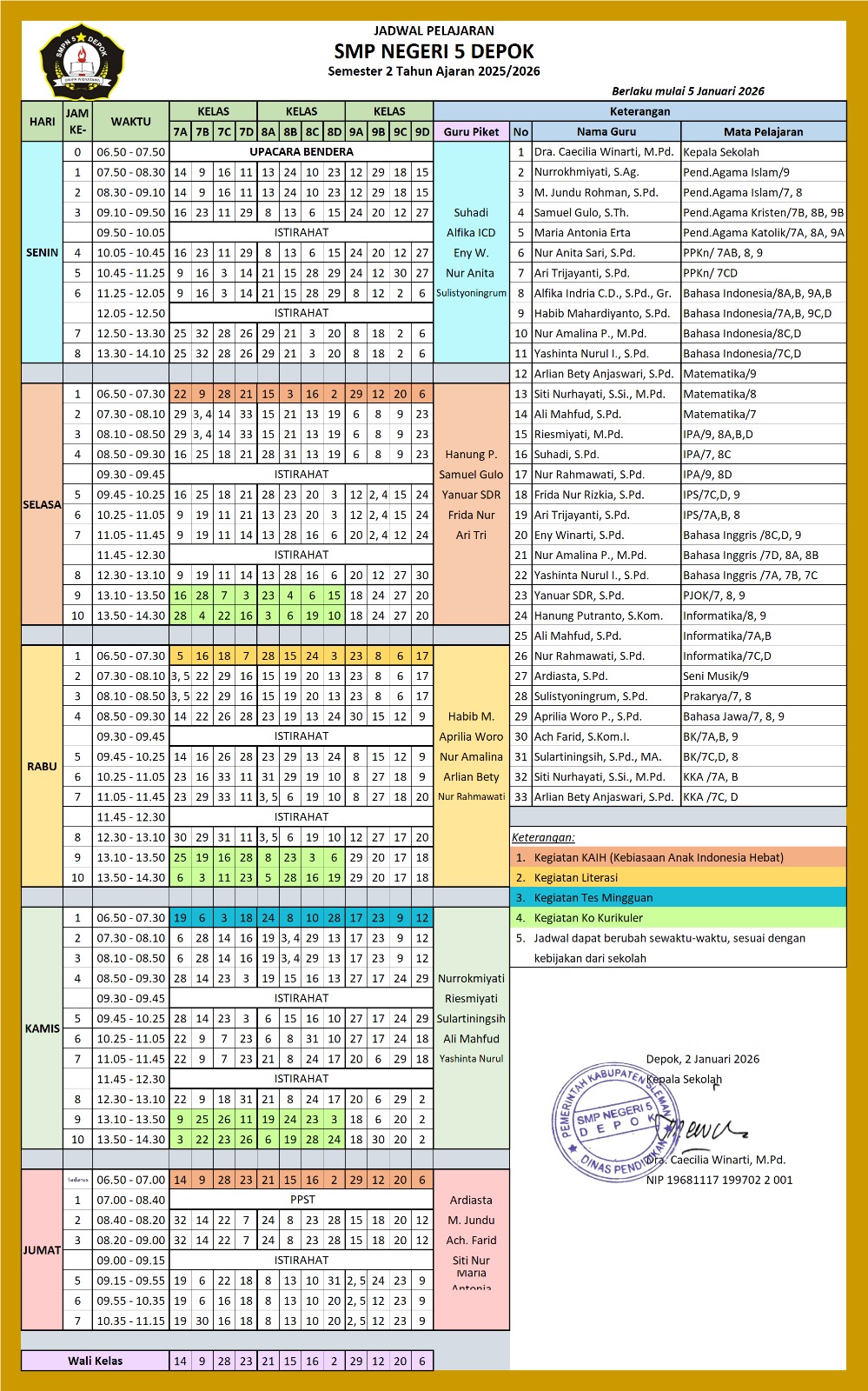 Informasi lengkap tentang pembagian kelas.