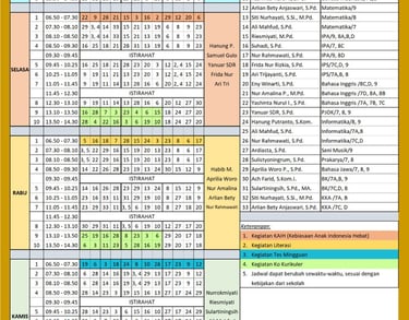 Waktu pelajaran dan kegiatan harian siswa.